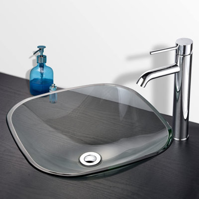 Aquaterior 16.5354" Glass Square Vessel Bathroom Sink 5.7087 H x 16.5354 D in Transparent | 16.5354" L X 16.5354" W X 5.70865" H