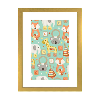 Wayfair Playtime by Dana Saulnier - Graphic Art Print 24.0 H x 16.0 W x 1.0 D in bluePaper in White/Gold Framed Paper | 24" H x 16" W x 1" D