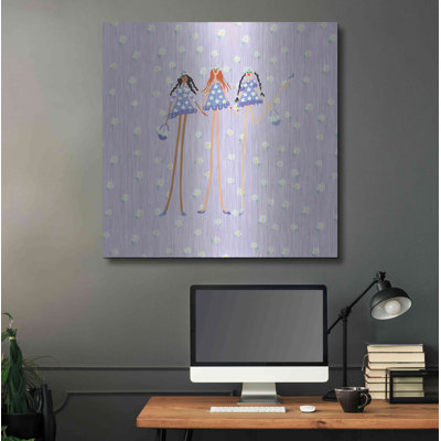 Trinx 'Flower Girls' By Caroline Benchtrit Metal Wall Art 36.0 H x 36.0 W x 0.13 D in whiteMetal in White/purple | 36" H x 36" W x 0.13" D