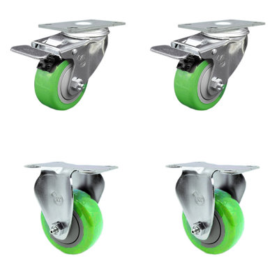 Service Caster 3.5 Inch Polyurethane Swivel Top Plate Caster Set 2 Lock Brake 2 Rigid SCC, Stainless Steel in Black | 8" H X 8" W X 8" D