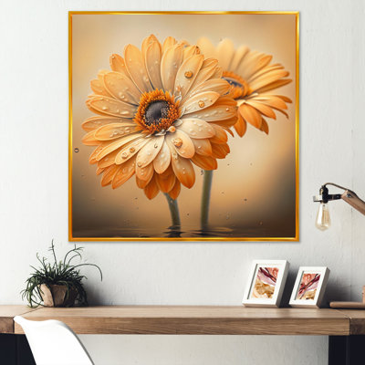 Wildon Home® Orange & White Daisy'S I - Daisy Canvas Print Wall Art 16.0 H x 16.0 W x 1.0 D in orangeCanvas in Gold Floater Framed