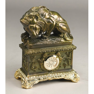 Wayfair Lion & Snake Tabletop Clock 7.0 H x 5.5 W x 3.5 D in Resin in Bronze/Gold | 7" H X 5.5" W X 3.5" D