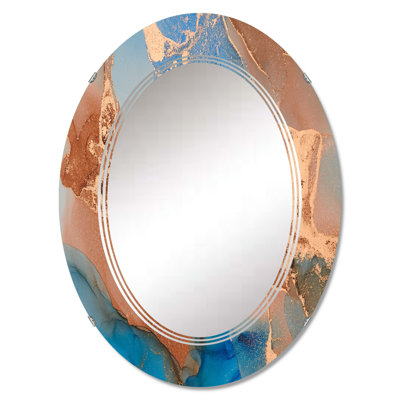 East Urban Home Blue & Brown Luxury Abstract Fluid Art XII - Modern Wall Mirror Oval 36.0 H x 24.0 W x 0.24 D in blue/brown | 36" x 24"