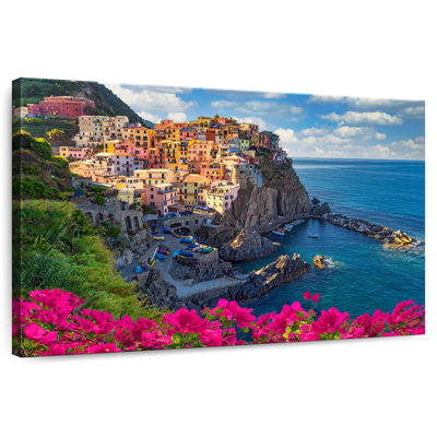 Beachcrest Home™ Gillard Bougainvillea In Manarola Canvas in Blue | 8" H x 12" W