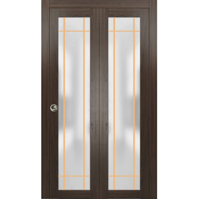 Bi-fold Doors - SARTODOORS Paneled Wood Finish Bi-Fold Door 84.0 H x 96.0 W x 2.0 D in brownWood in Chocolate Ash | 96" x 84"