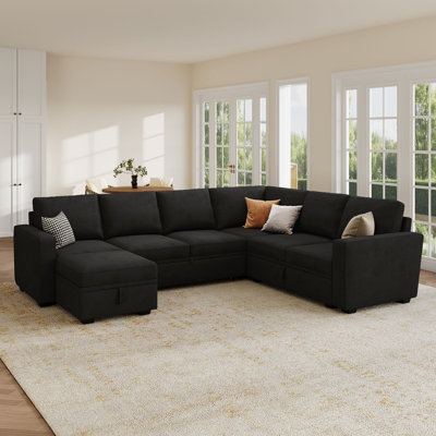 Black Velvet Sectional - Latitude Run® Niyona U Shaped Sleeper Sectional Modular Sofa Bed w/ Storage Chaise 35.0 H x 106.2 W x 83.4 D in black/Velvet