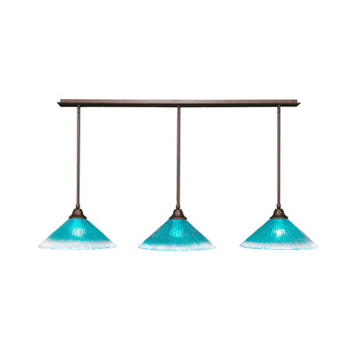 Wayfair 3 Light Stem Hung Linear Pendalier Shown w/ 16" Crystal Glass 8.5 H x 60.0 W x 16.0 D in Glass in Brushed Nickel/Teal | 8.5" H X 60" W X 16" D