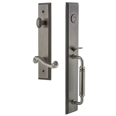 Grandeur Carré One-Piece Complete Inactive Dummy Handleset w/ C Grip and Newport Lever 19.0 H x 3.0 W x 3.0 D in Antique Pewter