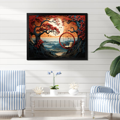 Red Barrel Studio® Japon Seaside Swing Papercut III On Canvas Print 12.0 H x 20.0 W x 1.0 D in red/orange/blackCanvas | 12" H x 20" W x 1" D