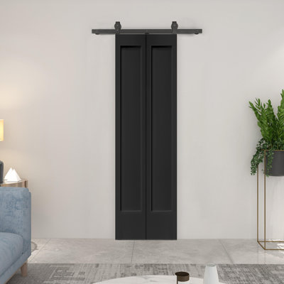 Bi-fold Doors - Barn Door - Calhome Paneled MDF Composite Bifold Barn Door w/ Installation Hardware Kit 80.0 H x 24.0 W x 1.5 D in brown/greenManufactured Wood
