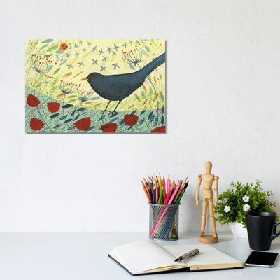 East Urban Home Blackbird & Crow by Michelle Campbell - Wrapped Canvas Painting 8.0 H x 12.0 W x 0.75 D in blueCanvas