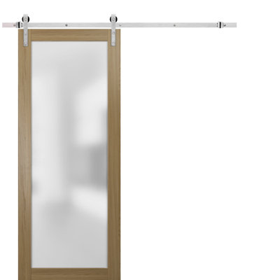 Barn Door - SARTODOORS Planum Frosted Glass Wood Barn Door 96.0 H x 32.0 W in brownMetal in Honey Ash/Stainless Steel | 32" x 96"