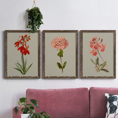 August Grove® Botanical Array VII - 3 Piece Picture Frame Painting Print Set on Canvas 31.5 H x 70.5 W in red/pinkCanvas, in Walnut