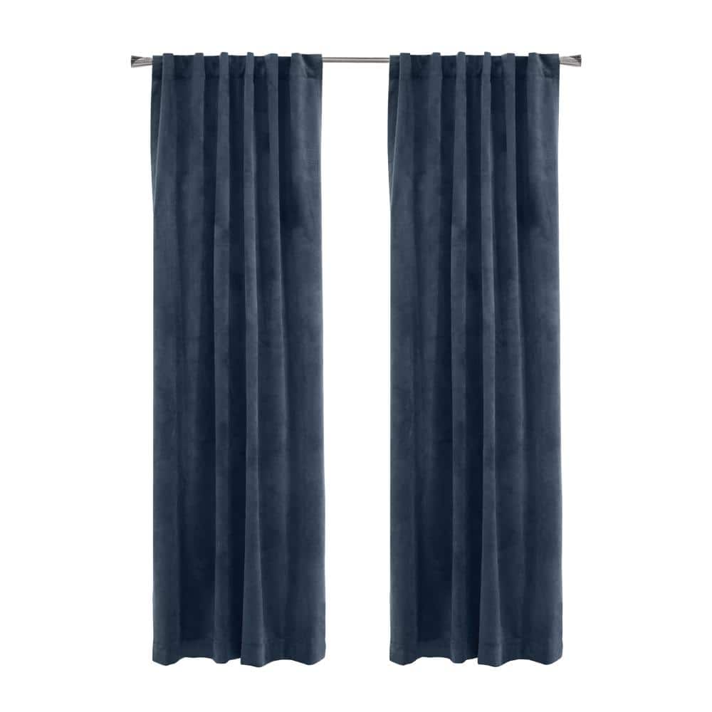 Commonwealth Home Fashions - Thermaplus Seren Room Darkening Window Treatment Dual Header Curtain Panel for Bedroom Livingroom 50" x 63" - Navy