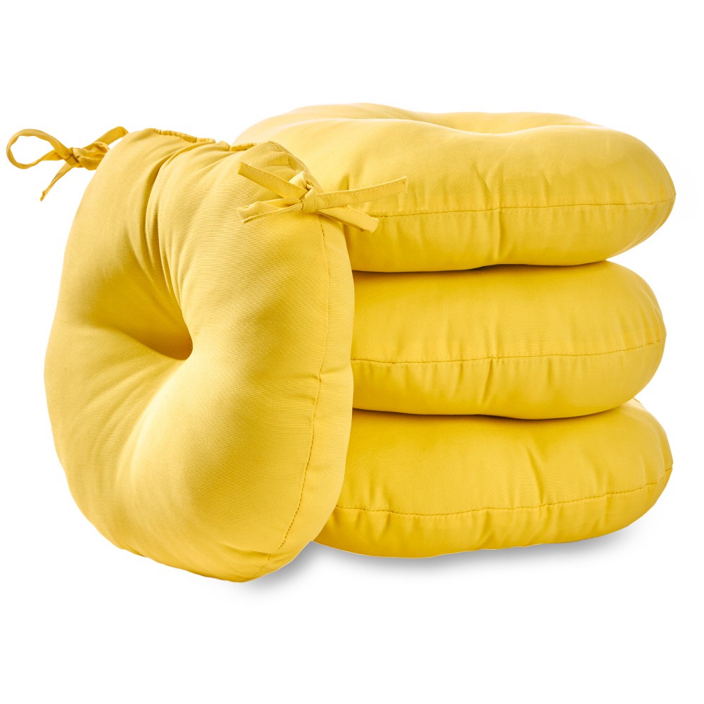 Kensington Garden 4pc 15"x15" Solid Outdoor Bistro Chair Cushions Sunbeam: Fade & Water-Resistant, Tufted with Ties